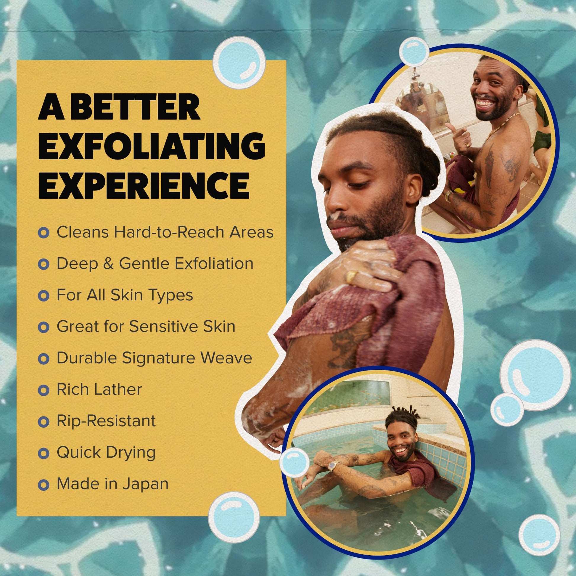 Extra‑thick 0.3 mm nylon filaments are knitted into a raised wave pattern that delivers firm stimulation and a satisfyingly brisk feel while still whipping up plenty of lather with minimal soap.