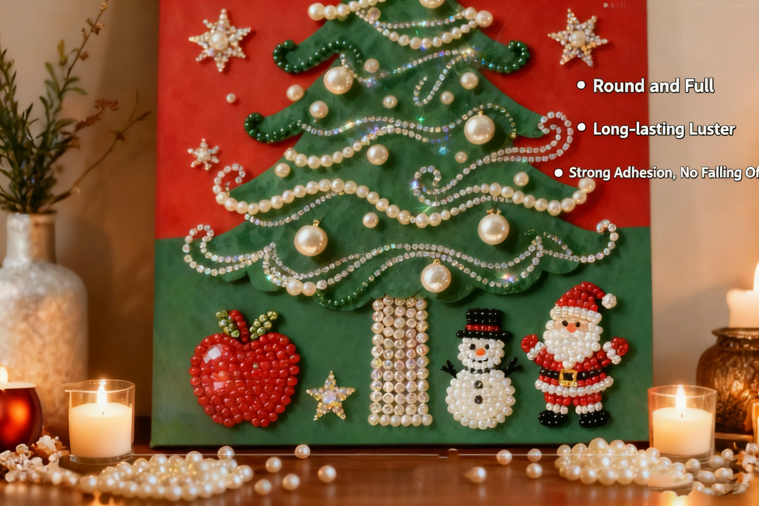 Plump, shiny, and perfectly sized for Christmas diamond art—adds instant luxury bling ✨Sticks well & won’t fade, making it easy to create a fancy pearl Christmas tree!